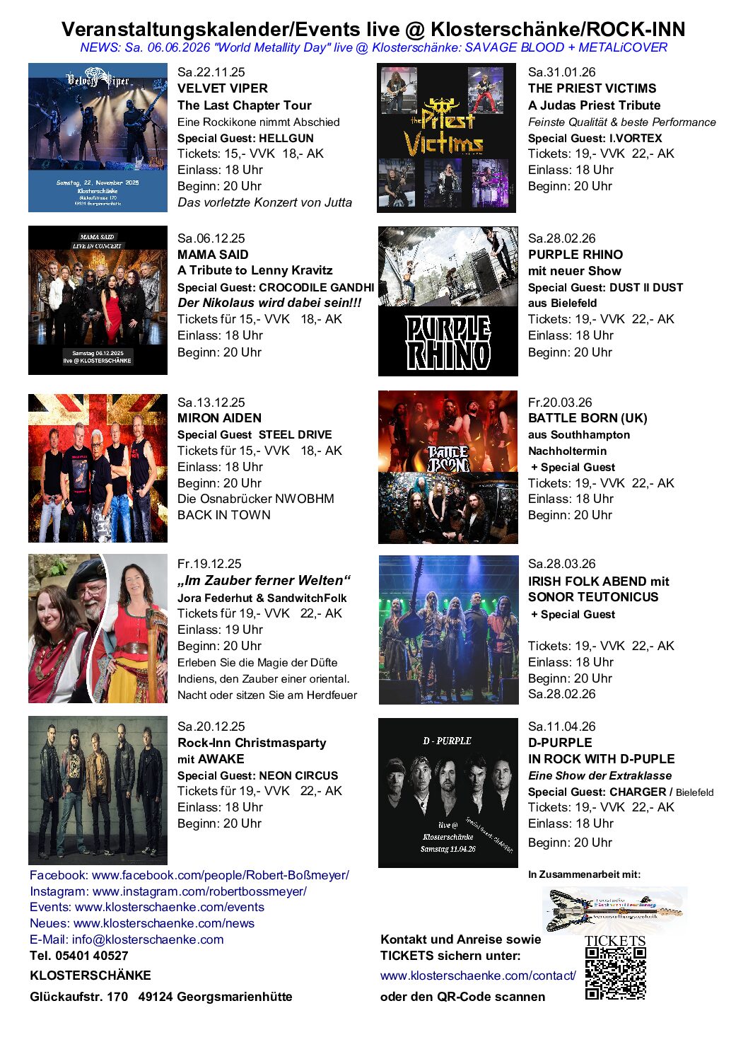 Klosterschänke Glückaufstr. 170, Georgsmarienhüttehttp://www.klosterschaenke.com/contact/ For more information, please always click on the event poster. You will find pictures, videos and more information about the event. Your Team from the KLOSTERSCHÄNKE Georgsmarienhütte